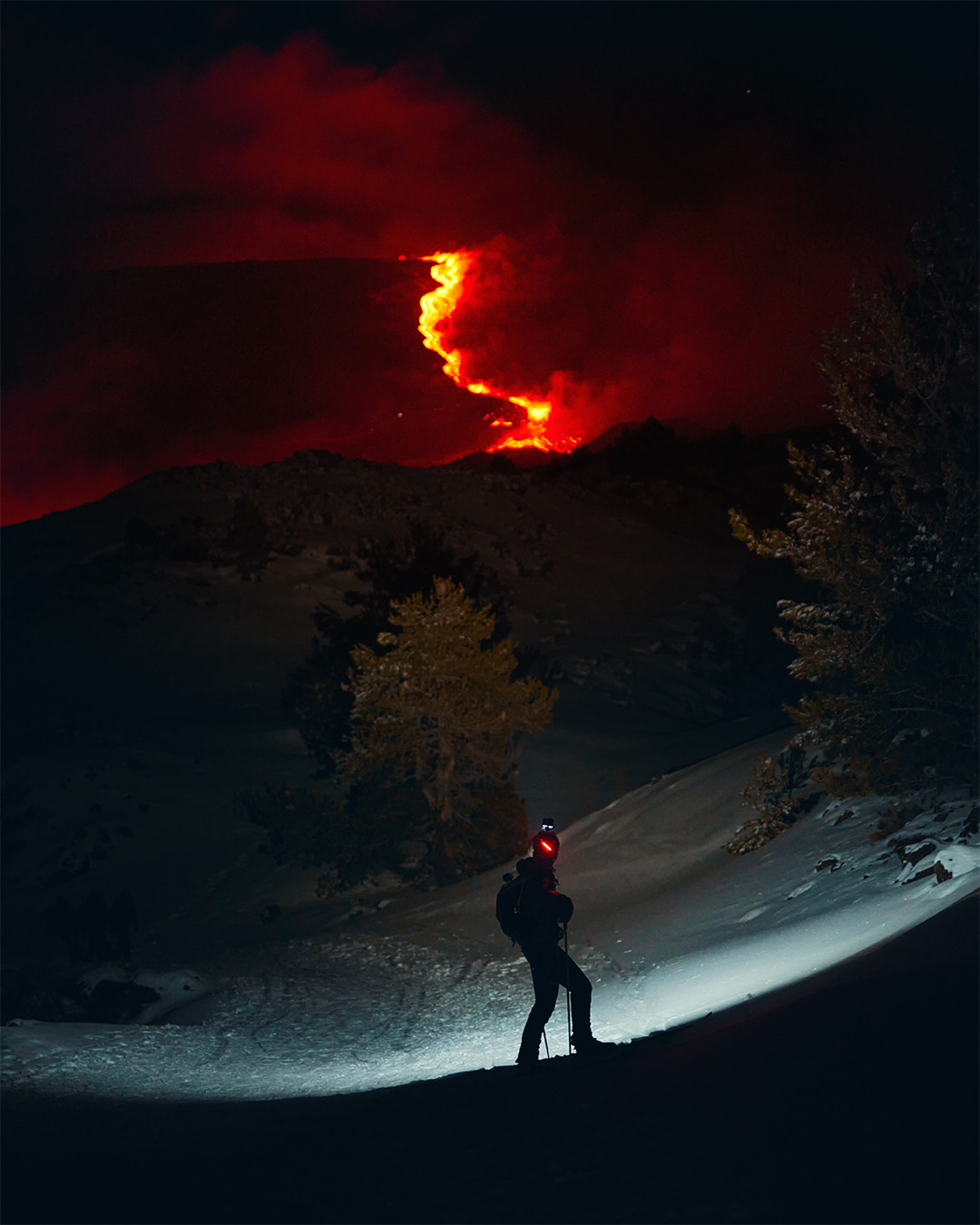 Ale nebyli jsme letos jen na Islandu. Společně s Matějem Bernátem jsme se vydali podpořit jeho pokus o rekordní výstup na vulkán Etna, který zrovna v čase, kdy Matěj bojoval o takzvaný FKT (fastest known time) chrlil lávu na všechny strany. Vznikly z toho opravdu dechberoucí fotografie a vyprávění, které stojí za to si poslechnout.